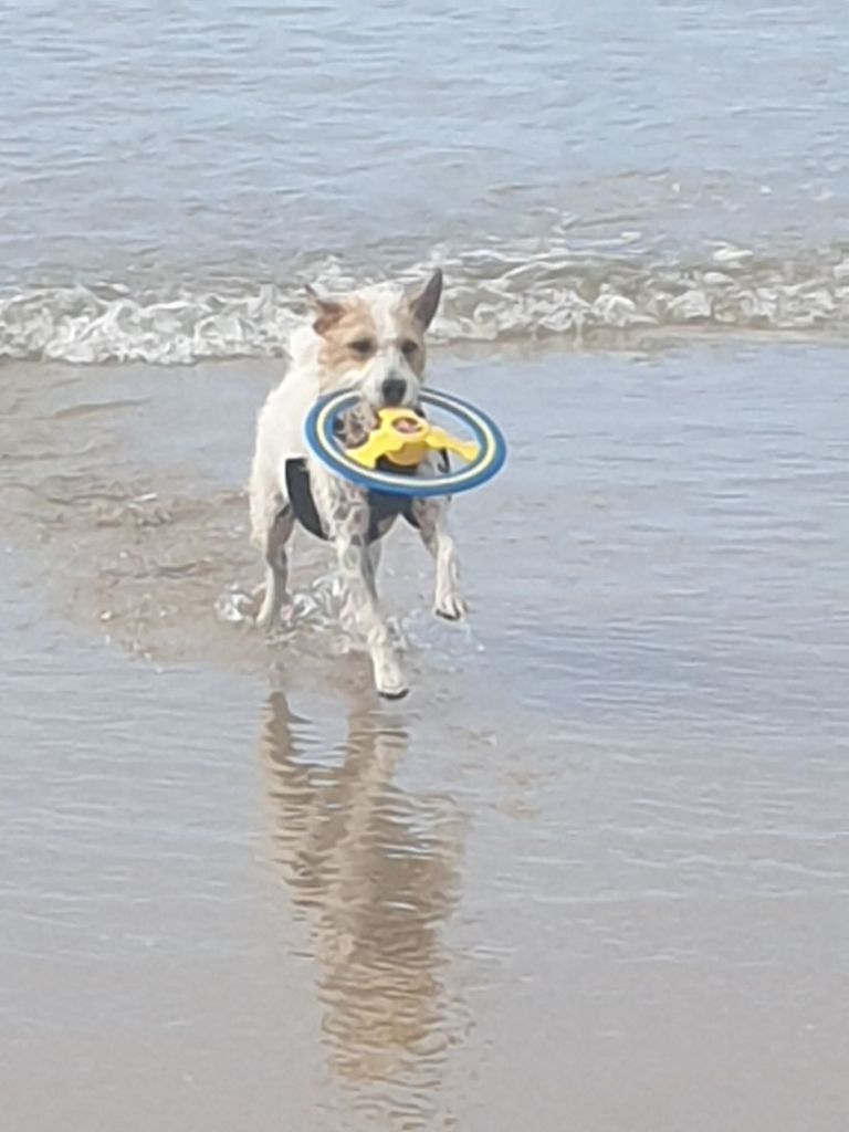 There is no happier little dog ,then when I return safely to shore,there is indeed fun in that and then to play Frisbee with him.