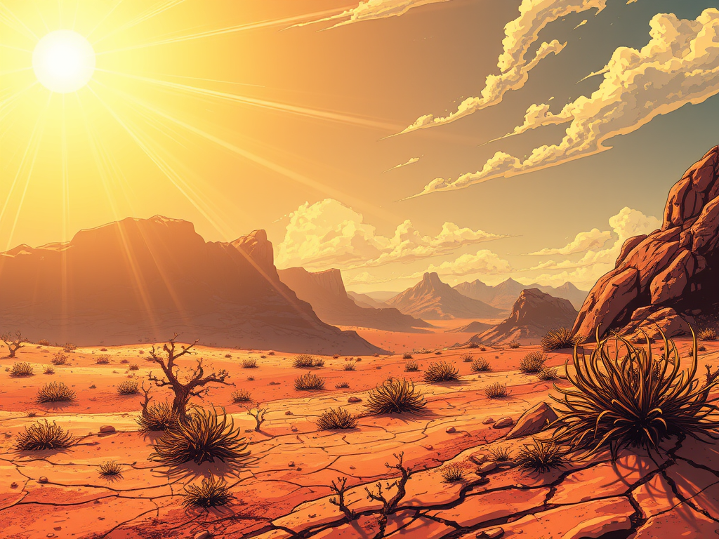 It’s the UK here, we are having a heatwave. We are not used to these temperatures and we are suffering. I just thought I’d share AI’s picture of our heatwave. It does feel dry and as if the sun is beating down on us endlessly.