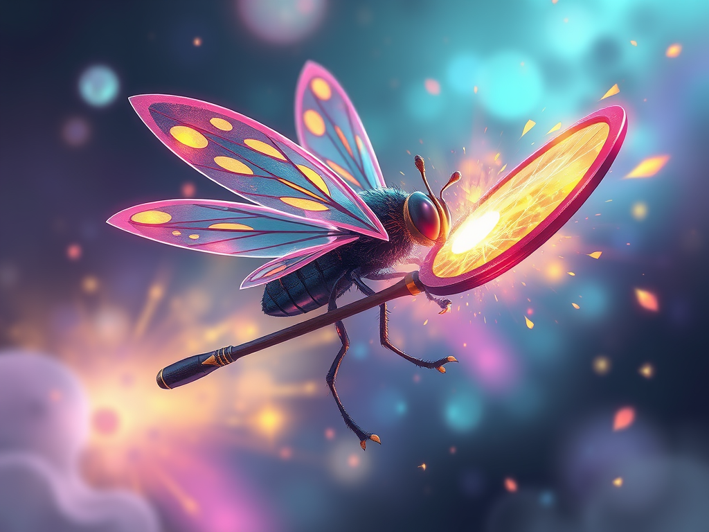 It doesn’t kill anything and it’s magic, so it does whatever I want it to do. It does scare people and flies( and lots of other insects too) because they think it’s an ordinary fly swatter and they think I’m going to hit them with it. Obviously I don’t and anyway all it will do is energise them and make them magical.