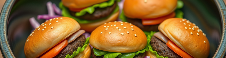 Easy , quick and fun. Tiny burgers in a bowl with red cabbage coleslaw. Yummy.