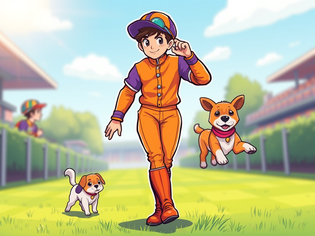 Perhaps the team sport of playing tag in bright orange and purple jockey gear with the peaked cap and posh riding boots( nicely polished). With my little dog as a mascot, jumping around not quite understanding the rules.
