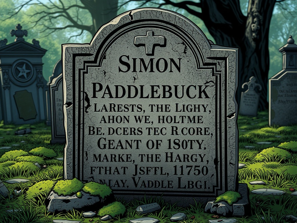 Simon Paddlebuck was born in 1685 and died in 1762 at the splendid age of 77, he had lived a good and prosperous life, never married but had many relatives and friends who kindly arranged when the time came for him to have a lovely plot in the graveyard of St Bostsophine’s Church in the Parish of Winterstone and there he lay for many years undisturbed.