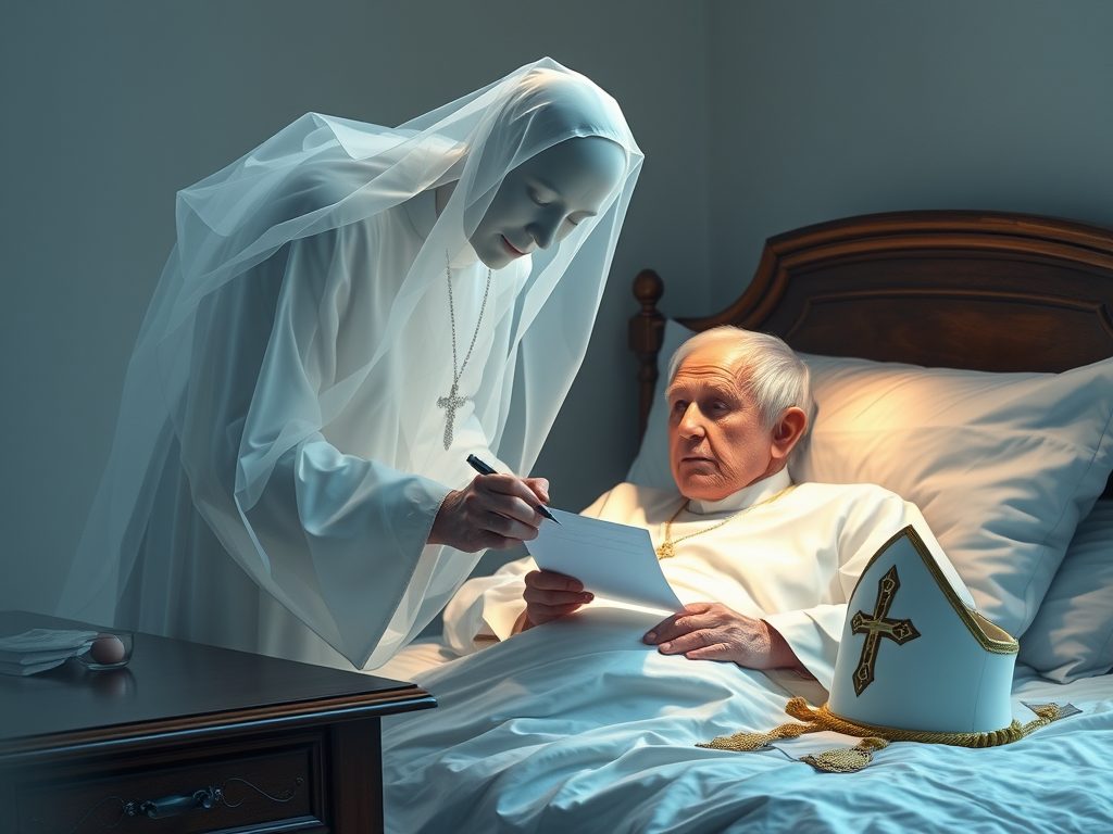 “Sign, Sign” Simon wailed and handed the Bishop a pen.