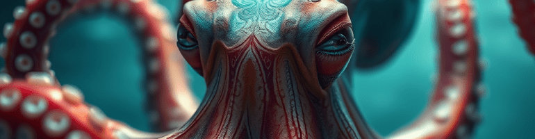Bit of a long headline, certainly not short and snappy like I imagine it’s subject to be. The creature is a Veined Octopus, now if the name doesn’t give you nightmares my AI generated picture will.(see below)
