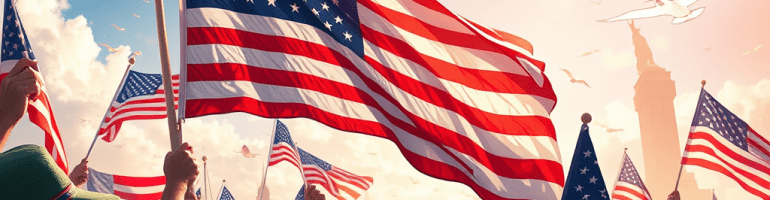 AI generated image of flag waving with doves of peace flying above.