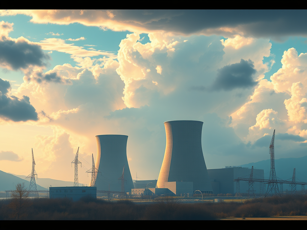AI generated image of Power Station, looks more coal fired than Nuclear.